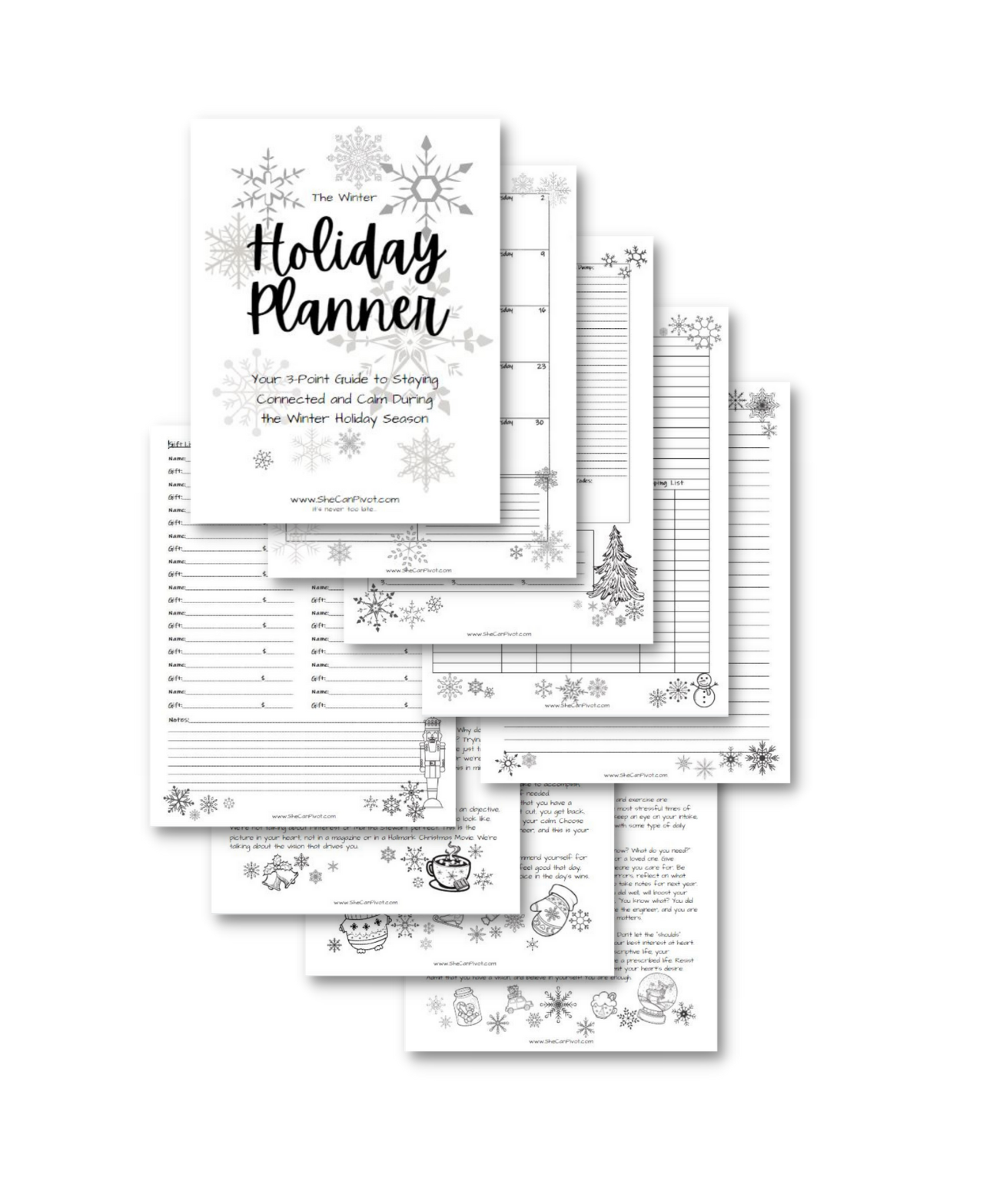 It’s my deepest hope that you’ll gain some connection and calm this holiday season, by utilizing this Winter Holiday Planner. May you use this Holiday Planner to organize your thoughts, manage your tasks and activities, and enjoy your holiday season. Claim your calm this season.